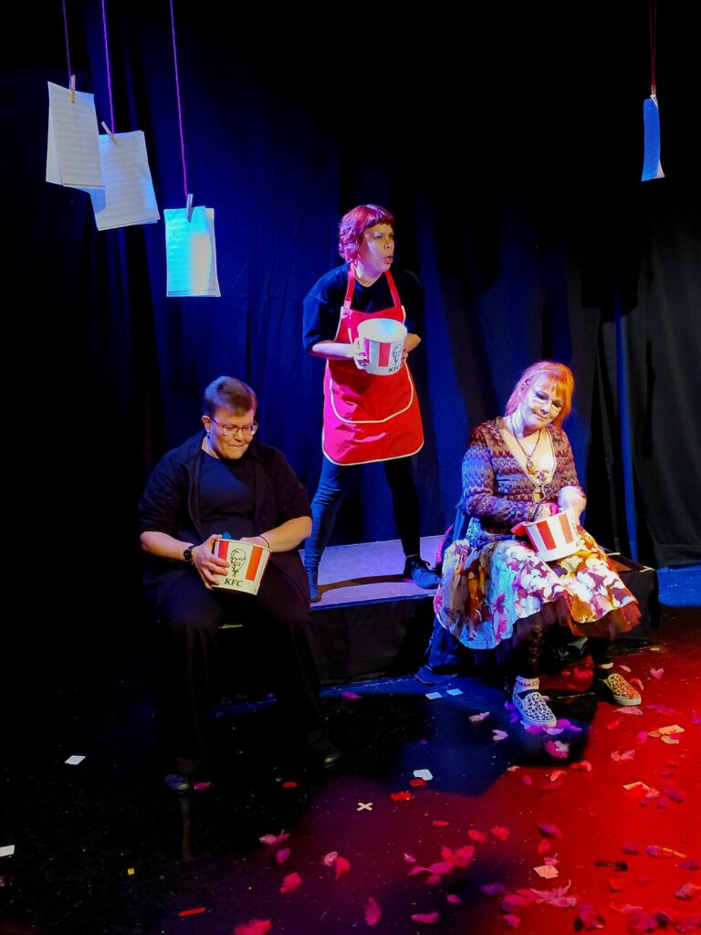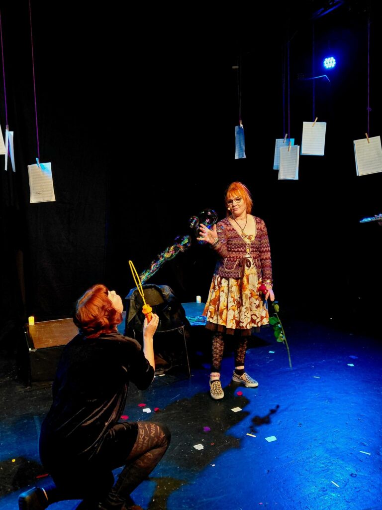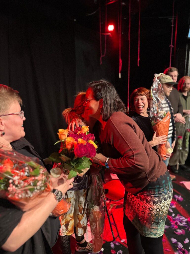 – Vuosittain eri produktioissamme työskentelee kymmenittäin harrastajia joko näyttämöllä tai puvustuksen, lavastuksen, maskeerauksen ja valo- ja äänitekniikan parissa, kertoo Jo-Jo teatterin moniosaaja Jatta Pirinen. ”Matka rakkauteen” oli yksi teatterin 30-vuotisjuhlavuoden ensi-illoista. Teatteri lahjoitti Aivovammaliitolle puolet pääsylipputuloista, peräti 615 euroa! Näytelmässä esiintyivät Satu Nurvo, Jatta Pirinen ja Pirjo Peltokangas. Jatta Pirinen oli myös näytelmän ohjaaja ja käsikirjoittaja, ja Pirjo Peltokangas soitti poikkihuilua. Työryhmään kuului heidän lisäkseen liuta teatterilaisia muun muassa tekniikan ja valosuunnittelun tehtävissä.