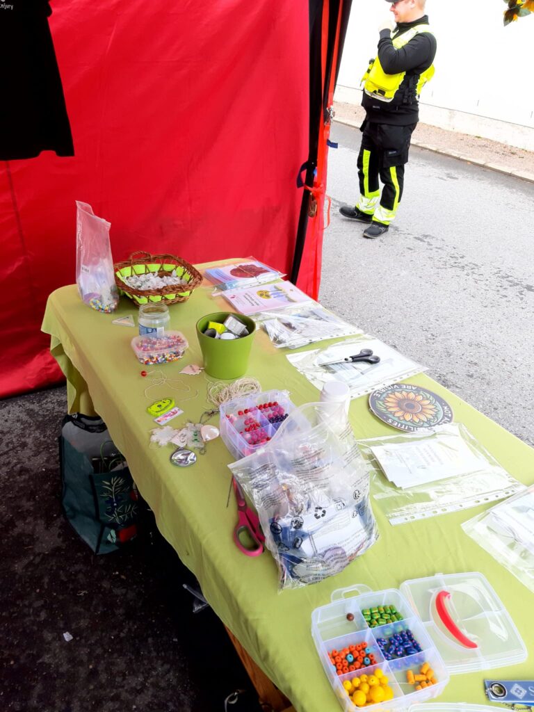 Uuden puheenjohtajan Heidin kielitaito oli suureksi avuksi, kun kohtasimme englantia puhuvia osallistujia. Heti alussa oli runsaasti arpamyynnin kysyjiä, joista suuri osa osti arpoja erityisesti yhdistysten kannatukseksi. Niihin emme osanneet varautua tällä kertaa, mutta mikäli meillä on voimia osallistua ensi vuonna, varaudumme arpojen myyntiin. Koimme tulevamme kuulluksi isossakin tapahtumassa, vaikka kaipaamme lisää tekijöitä yhdistykseemme.