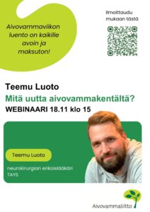 Aivovammaviikon verkkoluento. Tapahtuma on kaikille avoin ja maksuton.
